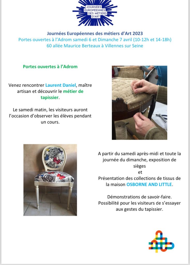 #ADROM #JEMA2024 #exposition #portesouvertes #metiersdart #tapisseriedameublement