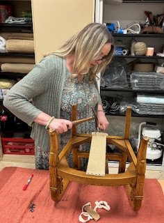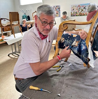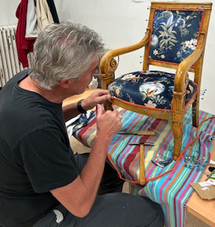 Pose des sangles par Cyrille et couture des ressorts par Anne-Laurence