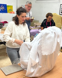 Piquage par Cyrille et piqûre et mise en blanc par Françoise