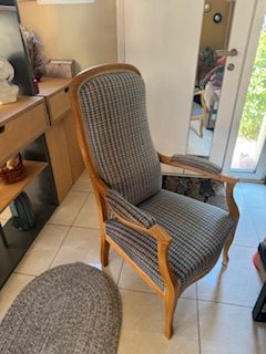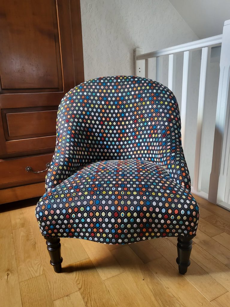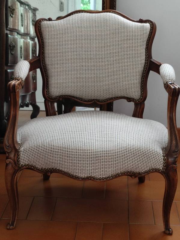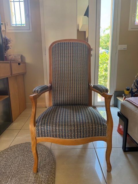 Fauteuil Voltaire – Garniture piquée pour l’assise, le dossier et les manchettes
