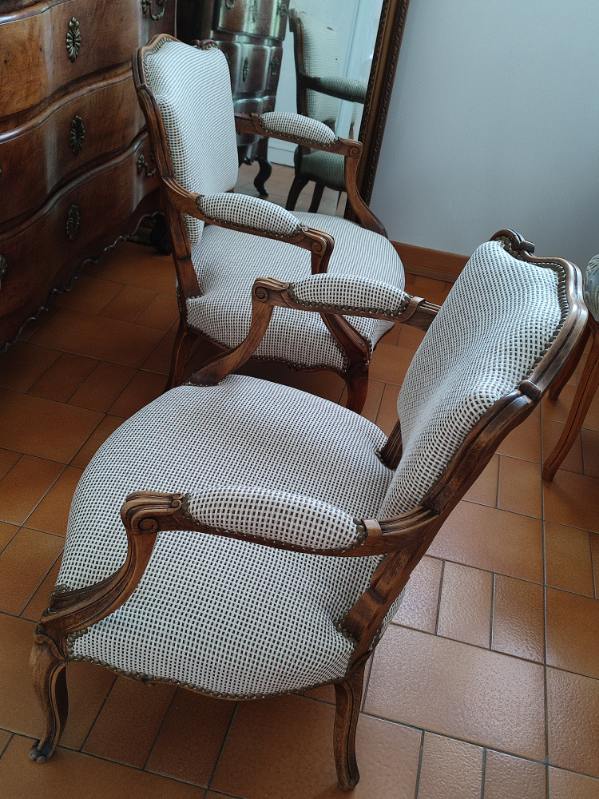 Paire de fauteuils cabriolet de style Louis XV – Garniture piquée pour l’assise et le dossier