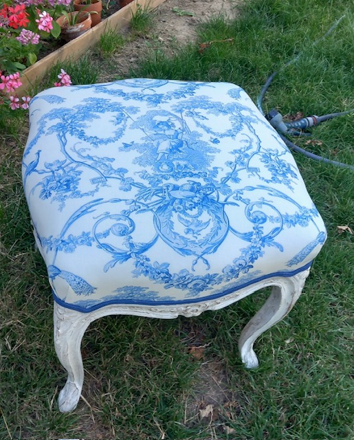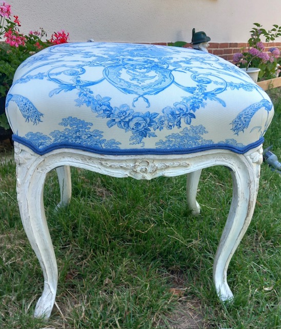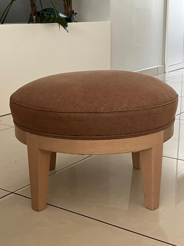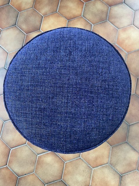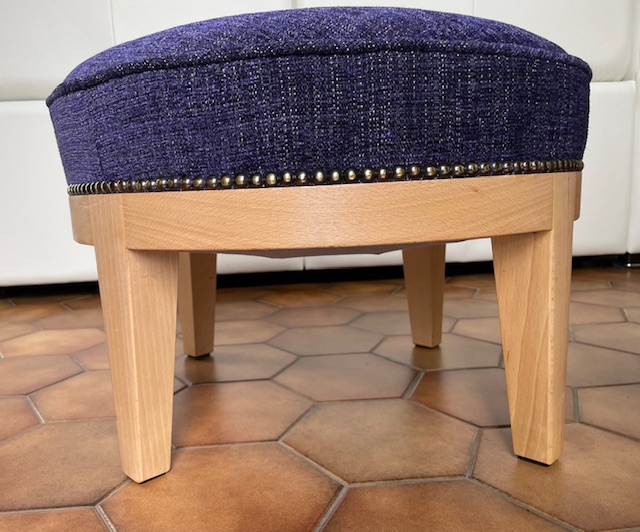 Tabouret rond – Garniture piquée – Couverture à plate-bande et passepoil dans le tissu