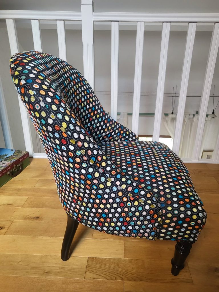 Chauffeuse trèfle – Garniture en pelote pour l’assise et le dossier